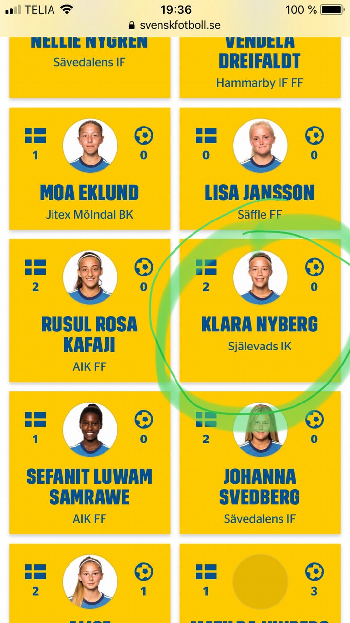 Klara Nyberg uttagen till dubbelmötena mot Finland.